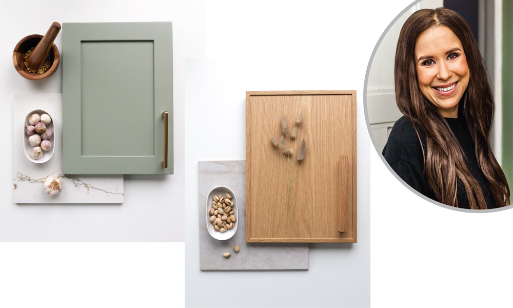 Myymälässä esillä sisustussuunnittelija Tea-Mariia Pyykösen huolella valitsemat ajattoman tyylikkäät materiaalikokonaisuudet.